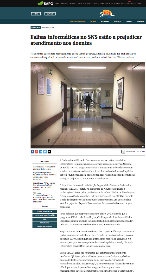 Falhas informáticas no SNS estão a prejudicar o atendimento aos doentes