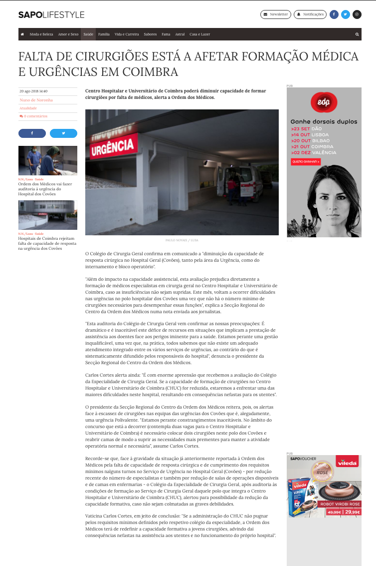 Falta de Cirurgiões está a afetar formação médica e urgências em Coimbra
