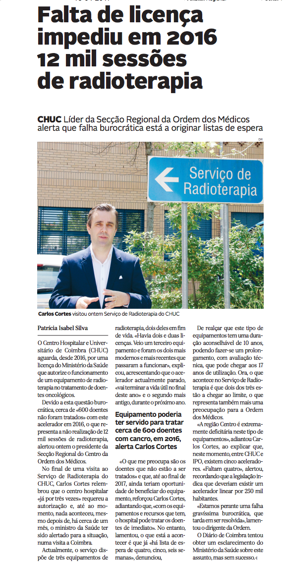 Falta de licença impediu em 2016 12 mil sessões de radioterapia