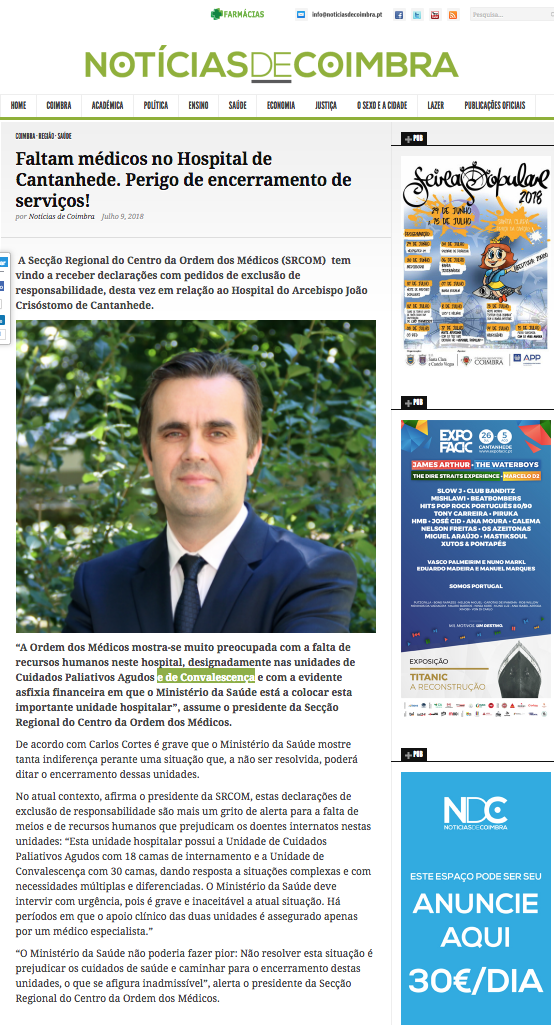 Faltam médicos no Hospital de Cantanhede. Perigo de encerramento de serviços!