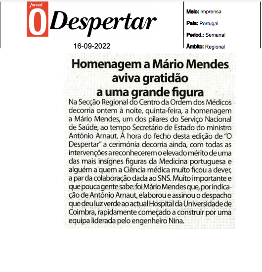 Homenagem a Mário Mendes aviva a gratidão a uma grande figura