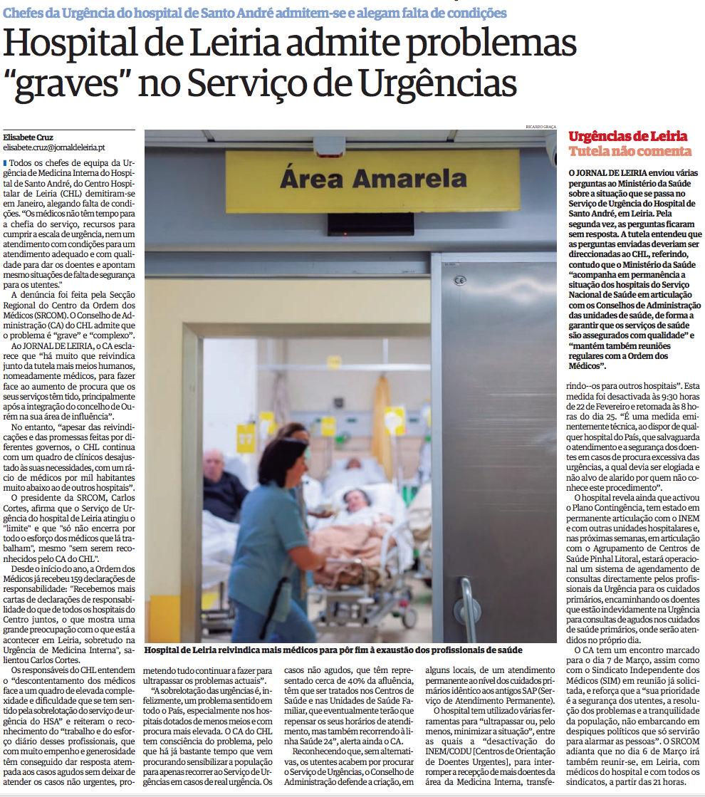 Hospital de Leiria admite problemas “graves” no Serviço de Urgências