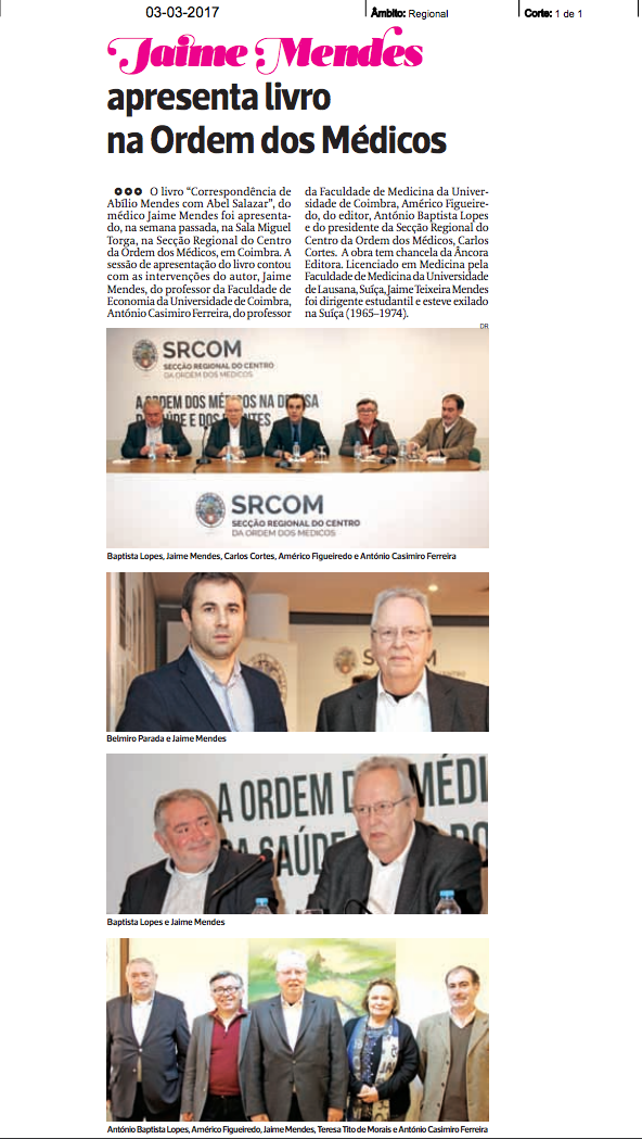 Jaime Mendes apresenta livro na Ordem dos Médicos