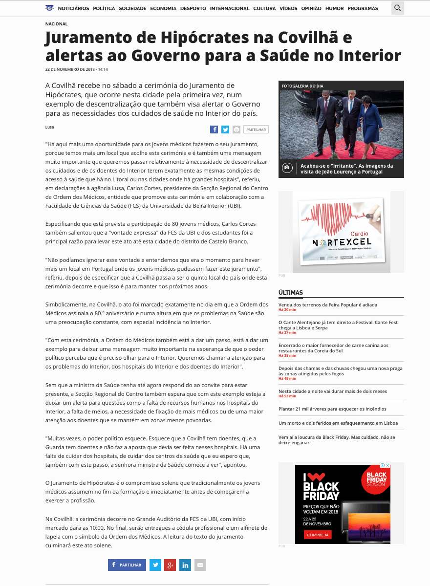 Juramento de Hipócrates na Covilhã e alertas ao Governo para a Saúde no interior