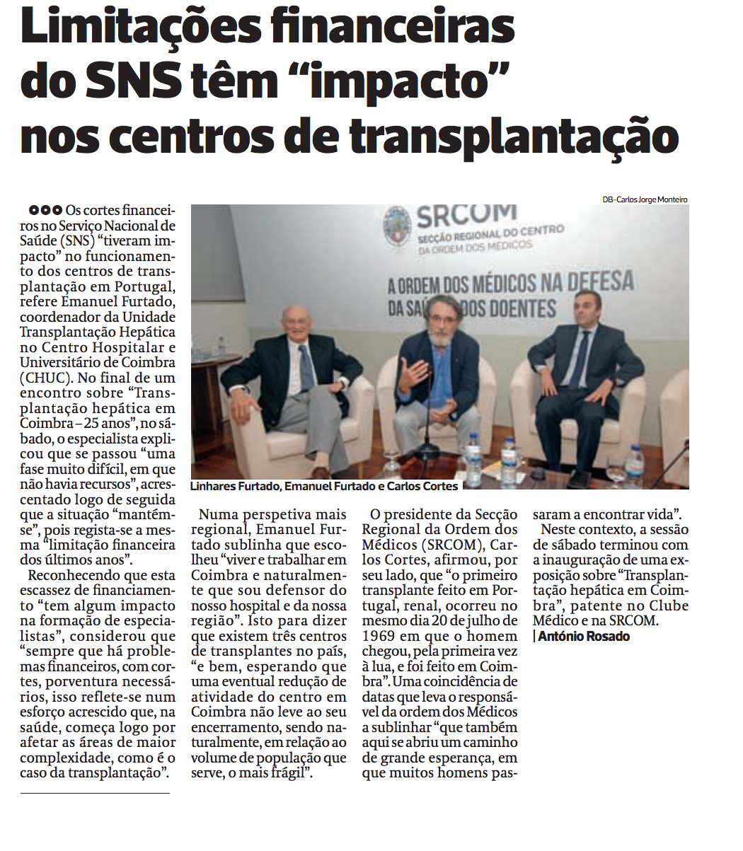 Limitações fianceiras do SNS têm ‘impacto’ nos centros de transplantação