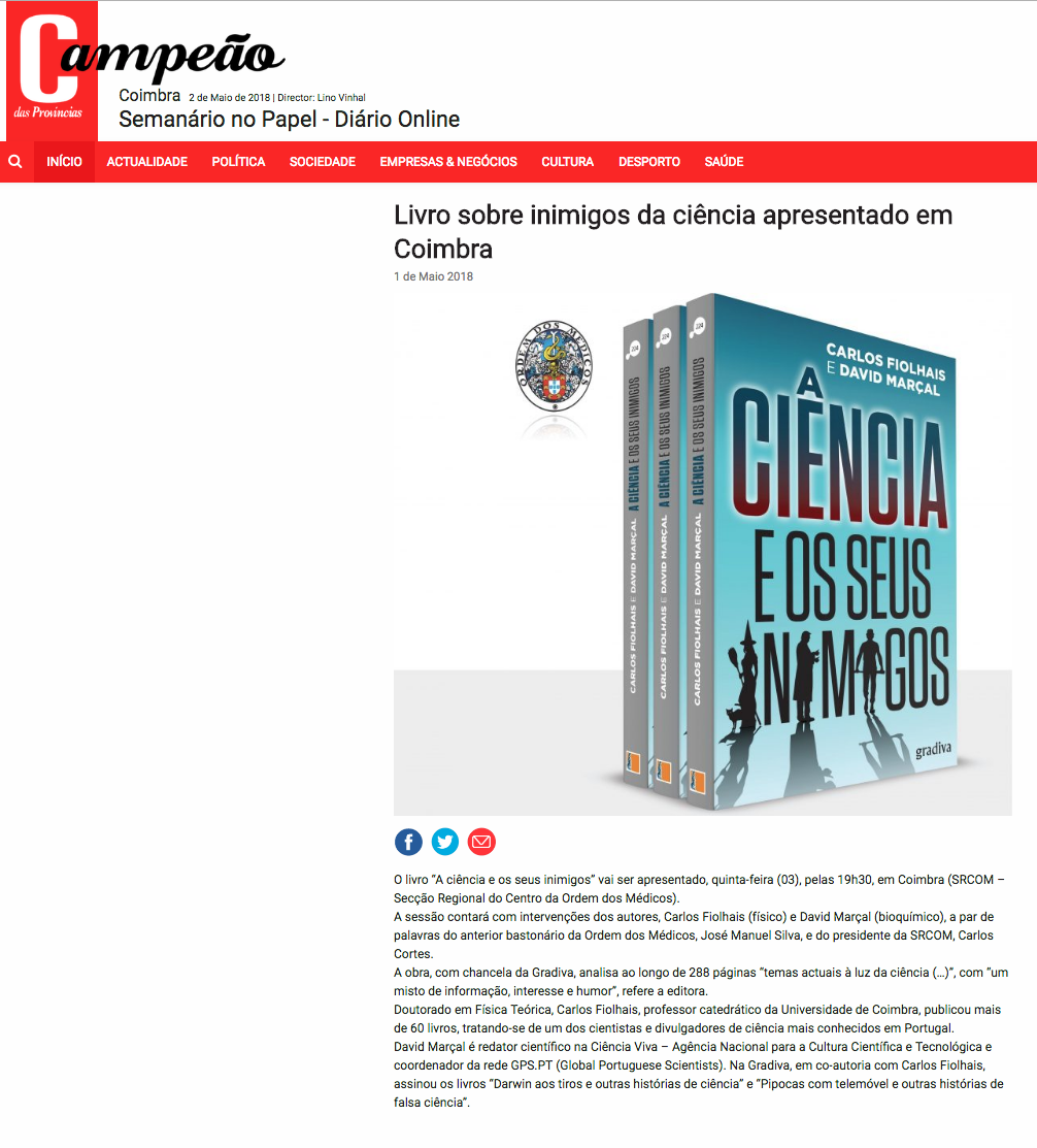 Livro sobre inimigos da ciência apresentado em Coimbra