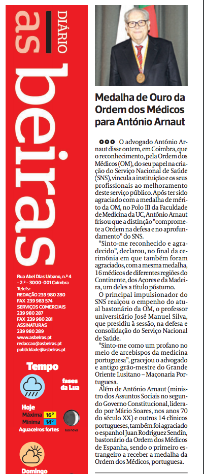 Medalha de Ouro da Ordem dos Médicos para António Arnaut
