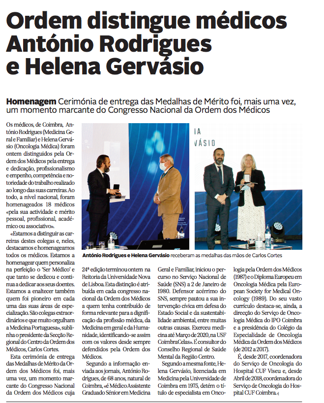 Medalhas de mérito: Ordem distingue António Rodrigues e Helena Gervásio