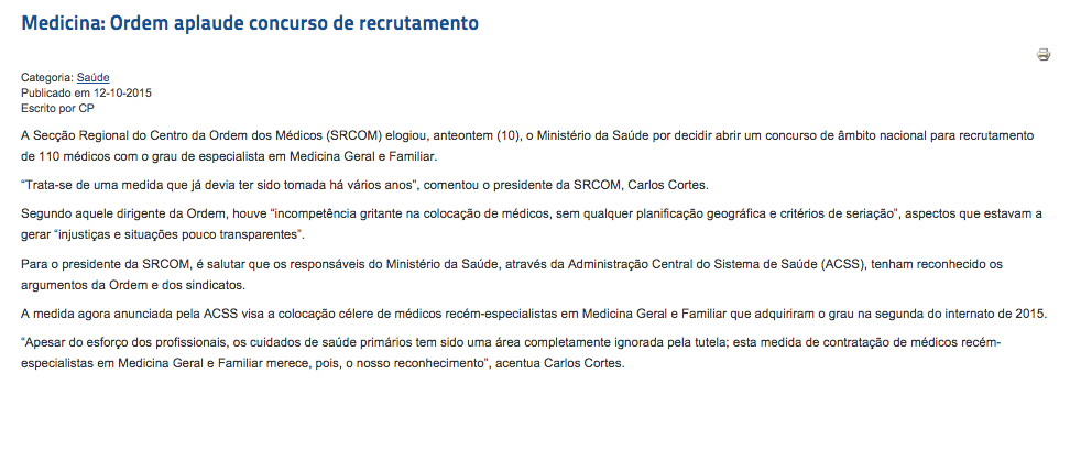 Medicina: Ordem aplaude concurso de recrutamento