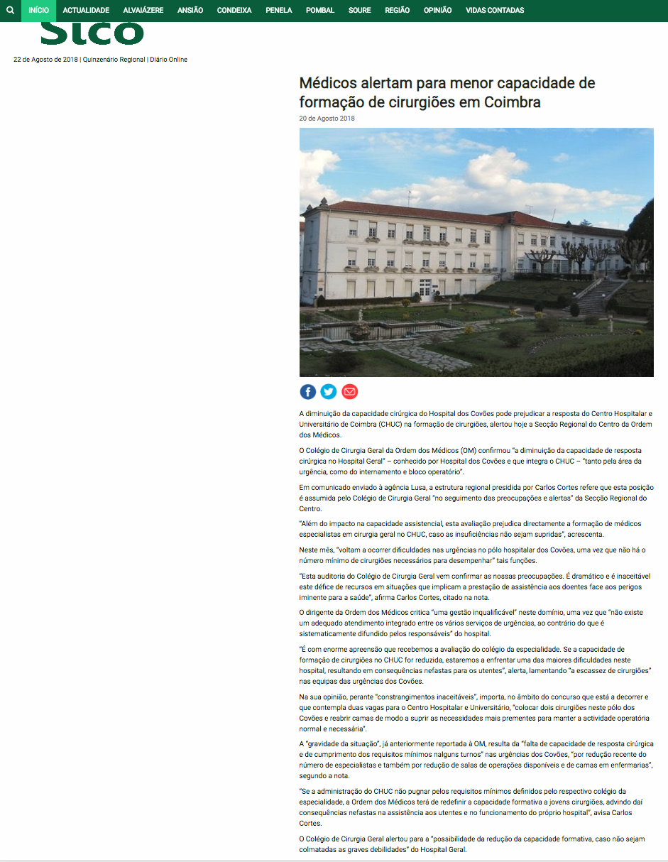 Médicos alertam para menor capacidade de formação de cirurgiões em Coimbra