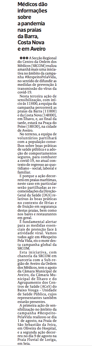 Médicos dão informações sobre a pandemia nas praias da Barra, Costa Nova e Aveiro