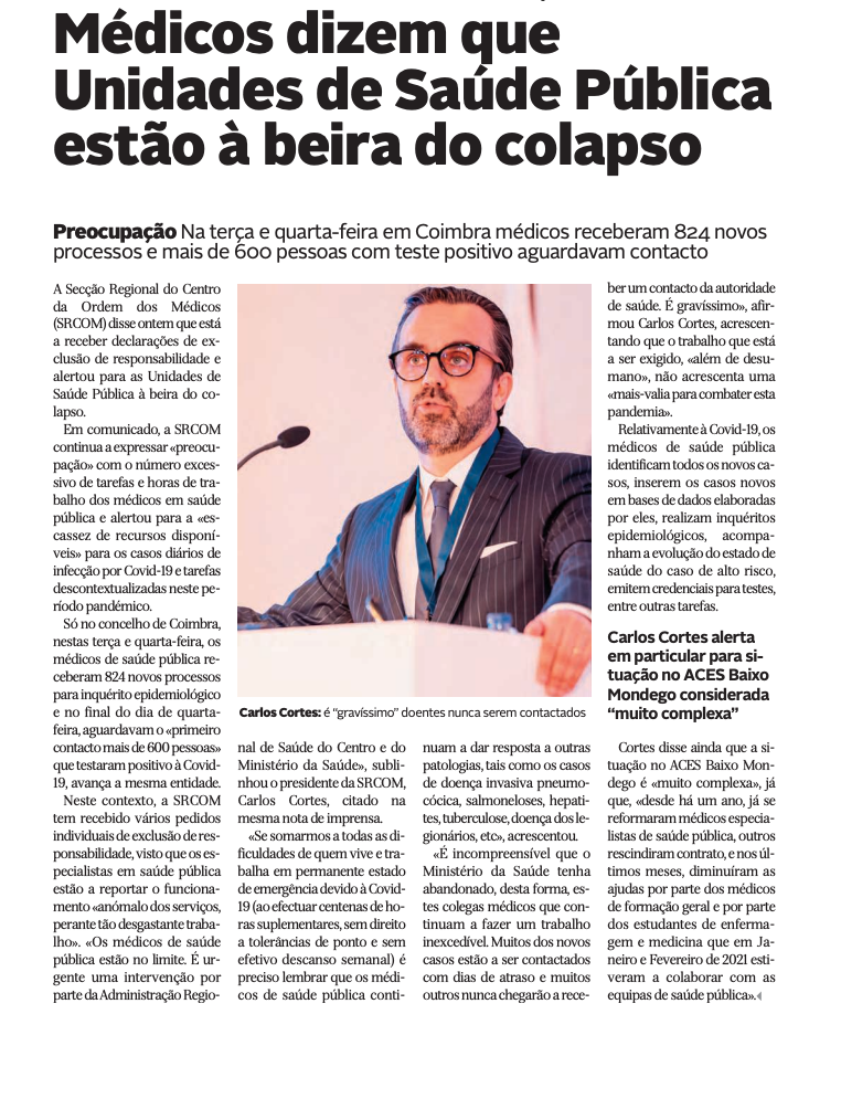 Médicos de Saúde Pública estão “à beira do colapso”