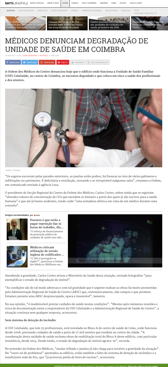 Médicos denunciam degradação em unidade de saúde no centro de Coimbra