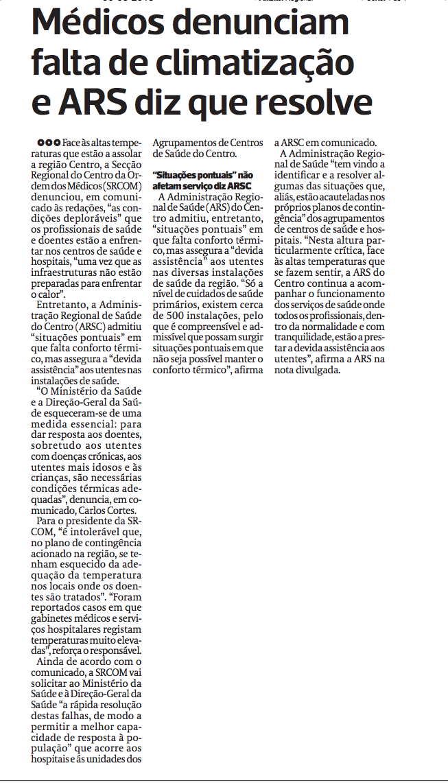 Médicos denunciam falta de climatização e ARS diz que resolve