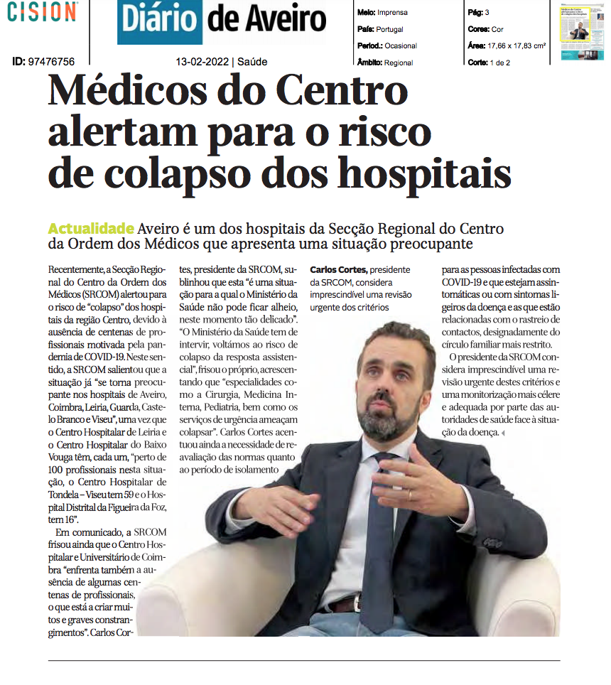 Médicos do Centro alertam para o risco de colapso dos hospitais