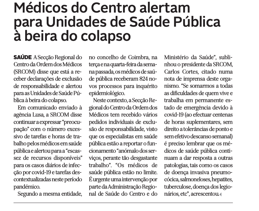 Médicos do Centro alertam para Unidades de Saúde Pública à beira do colapso