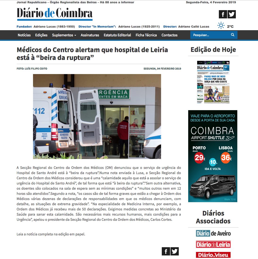 Médicos do Centro alertam que hospital de Leiria está à ‘beira da rutura’