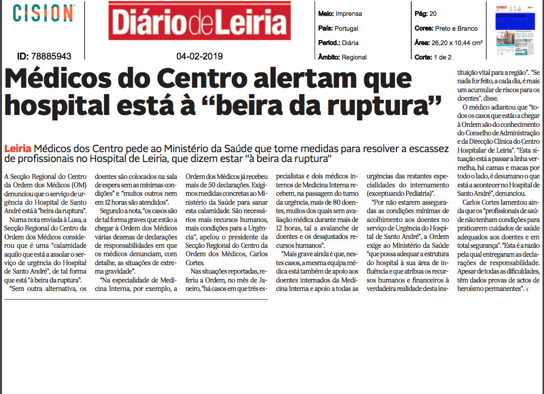 Médicos do Centro alertam que hospital está beira da ruptura
