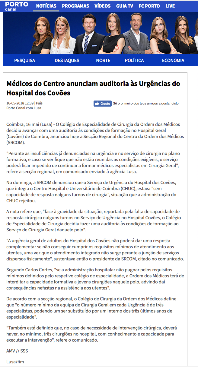 Médicos do Centro anunciam auditoria às Urgências do Hospital dos Covões