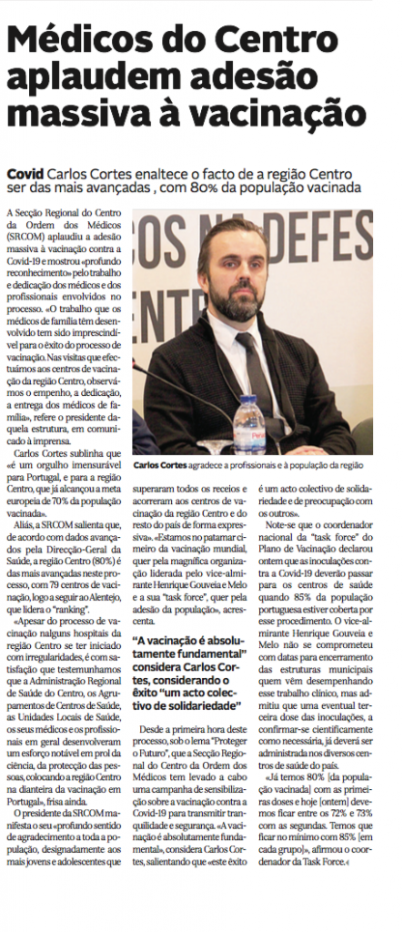 Médicos do Centro aplaudem adesão massiva à vacinação