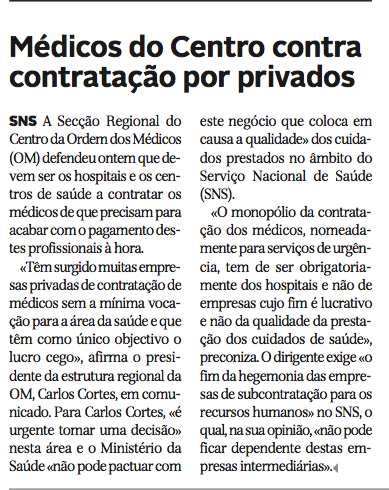 Médicos do Centro contra contratação por privados