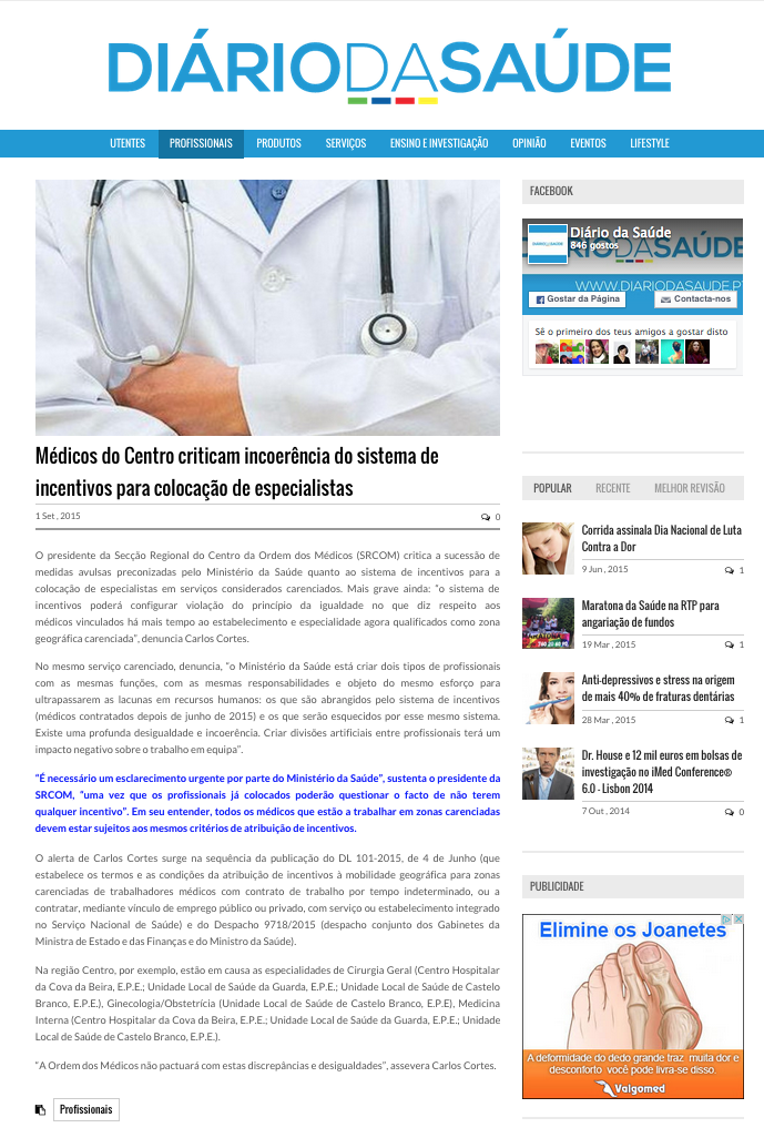Médicos do Centro criticam incoerência do sistema de incentivos pata colocação de especialistas