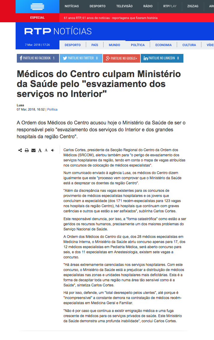 Médicos do Centro culpam Ministério da Saúde pelo “esvaziamento dos serviços no Interior”