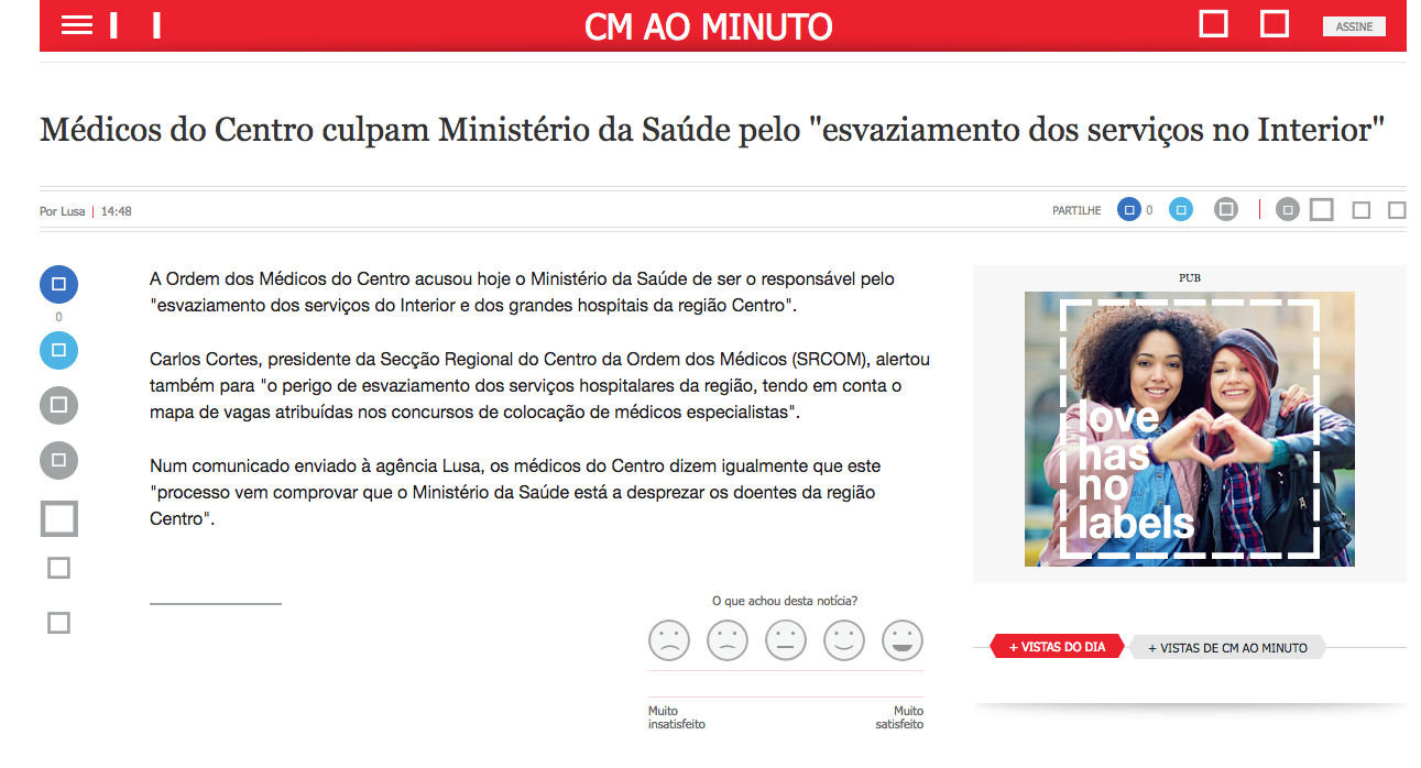 Médicos do Centro culpam Ministério da Saúde pelo “esvaziamento dos serviços no Interior”