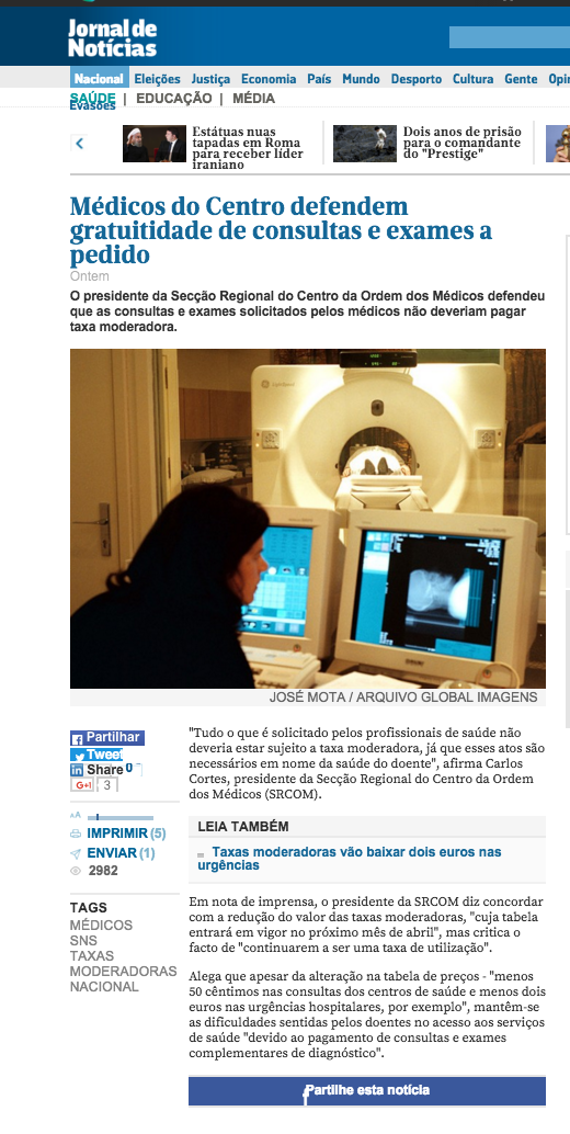 Médicos do Centro defendem gratuitidade de consultas e exames a pedido do médico