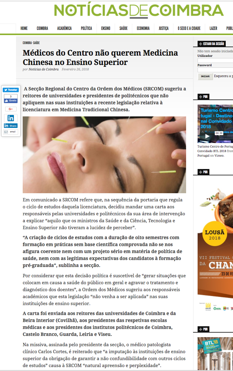 Médicos do Centro não querem Medicina Chinesa no Ensino Superior