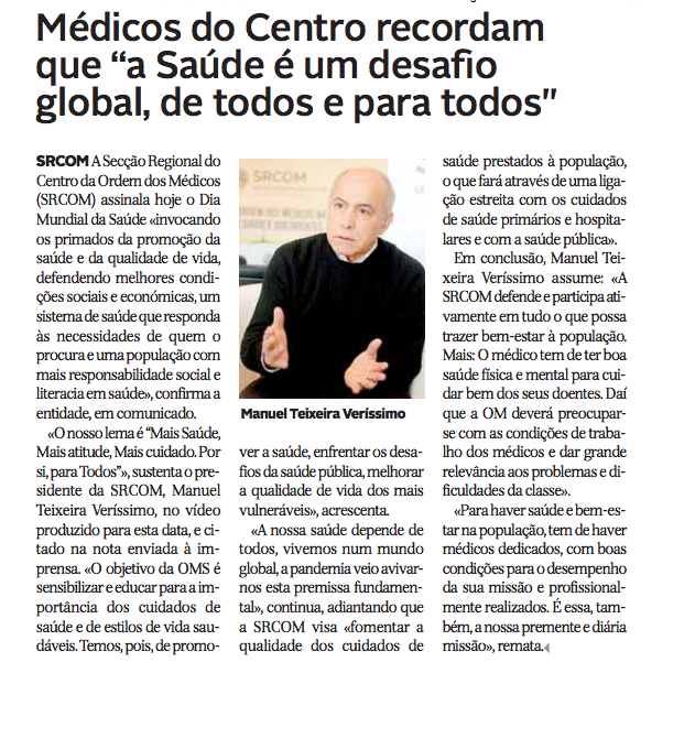 Médicos do Centro recordam que “a Saúde é um desafio global, de todos e para todos”