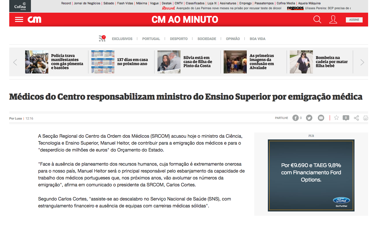 Médicos do Centro responsabilizam ministro do Ensino Superior por emigração médica