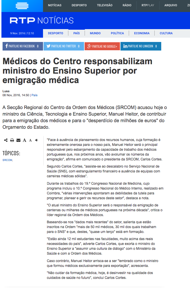 Médicos do Centro responsabilizam ministro do Ensino Superior por emigração médica