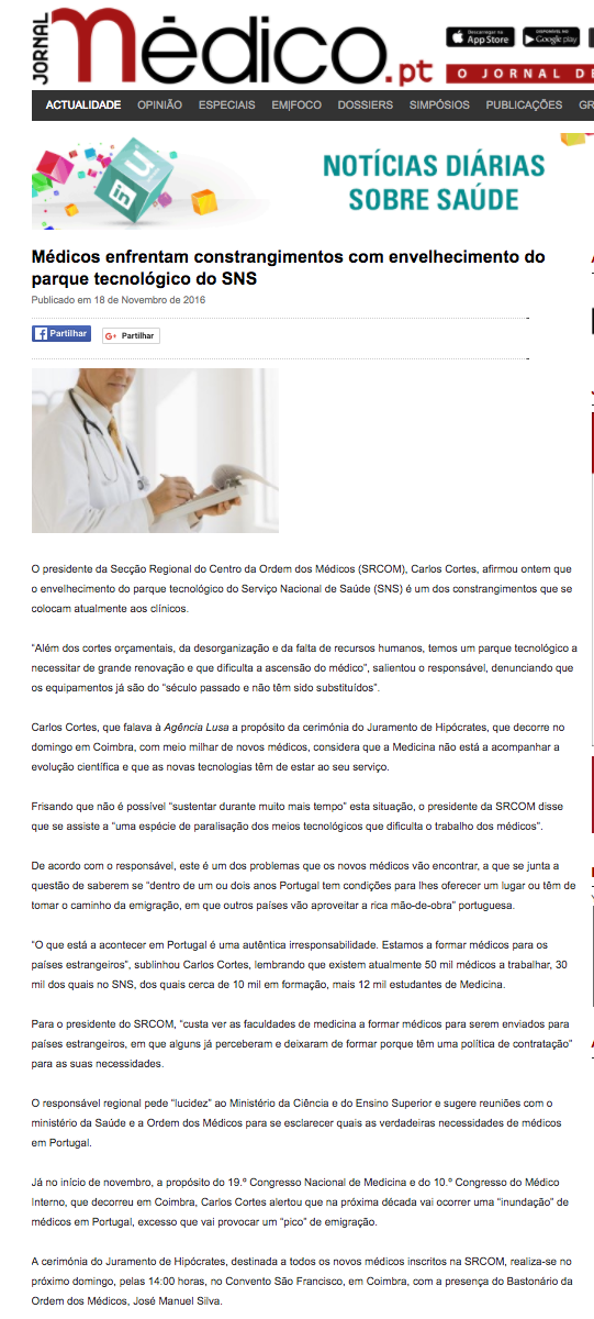 Médicos enfrentam constrangimentos com envelhecimento do parque tecnológico do SNS