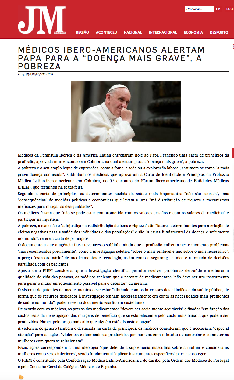 Médicos ibero-americanos alertam Papa para a “doença mais grave”, a pobreza