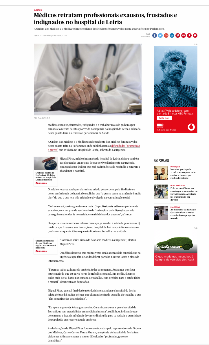 Médicos retratam profissionais exaustos, frustrados e indignados no hospital de Leiria