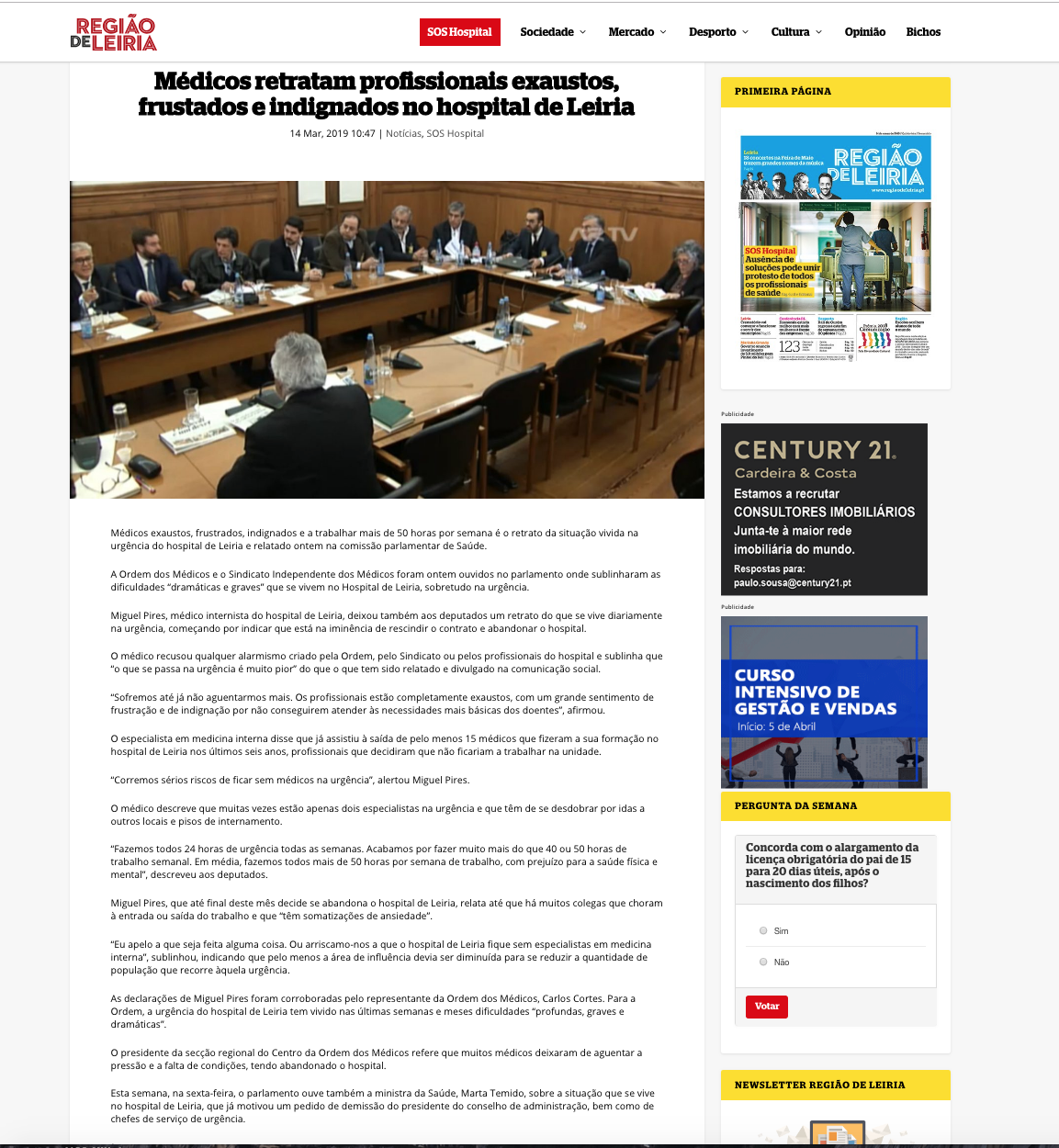 Médicos retratam profissionais exaustos, frustrados e indignados no hospital de Leiria