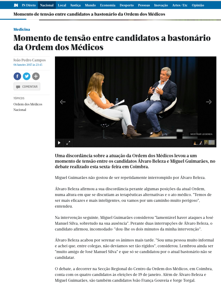 Momento de tensão entre candidatos a bastonário da Ordem dos Médicos