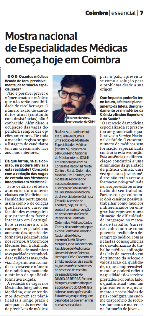 Mostra Nacional de Especialidades Médicas começa hoje em Coimbra