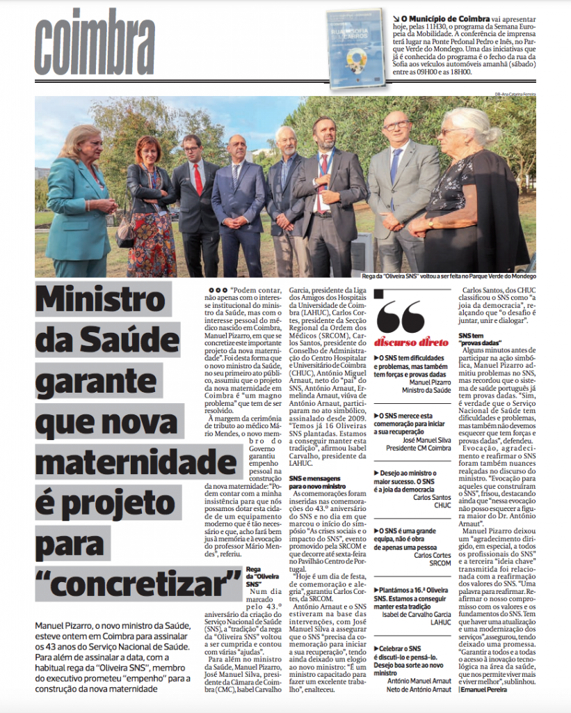 Novo ministro reafirma prioridade à construção da maternidade em Coimbra