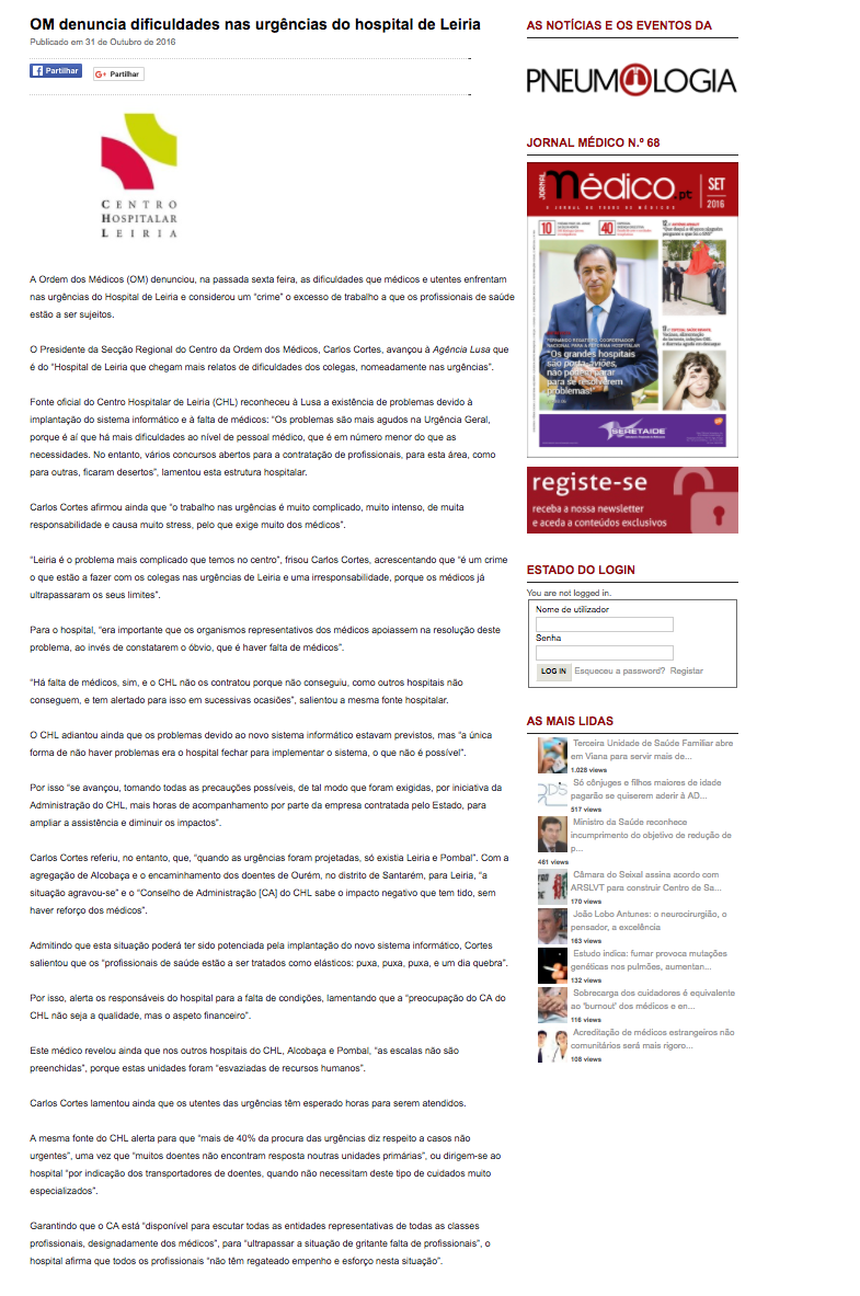 OM denuncia dificuldades nas urgências do hospital de Leiria