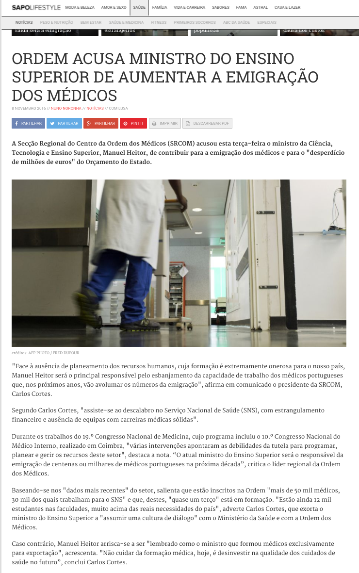 Ordem acusa ministro do ensino superior de aumentar a emigração dos médicos