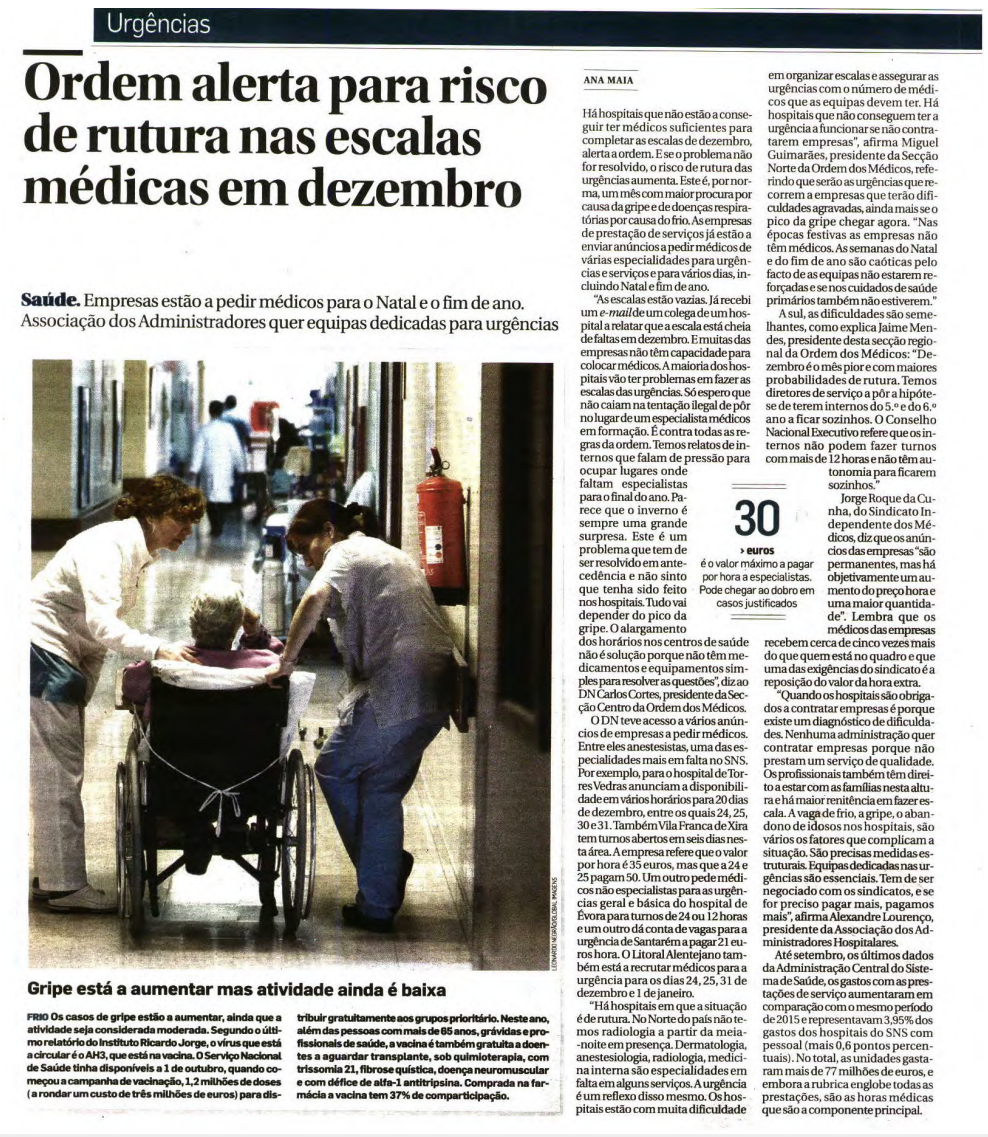 Ordem alerta para risco de rutura nas escalas médicas em dezembro