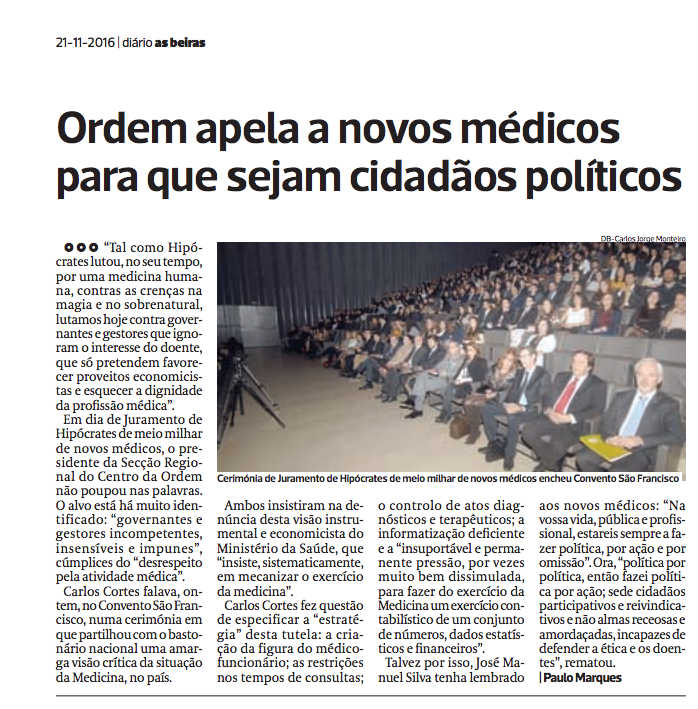Ordem apela a novos médicos para que sejam cidadãos políticos