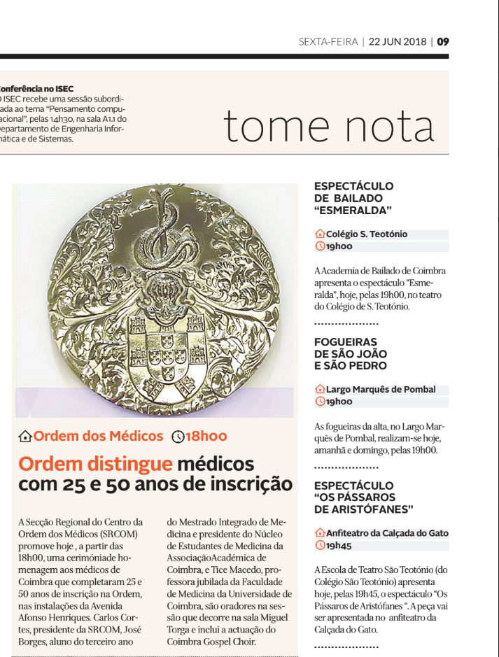 Ordem distingue médicos com 25 e 50 anos de inscrição