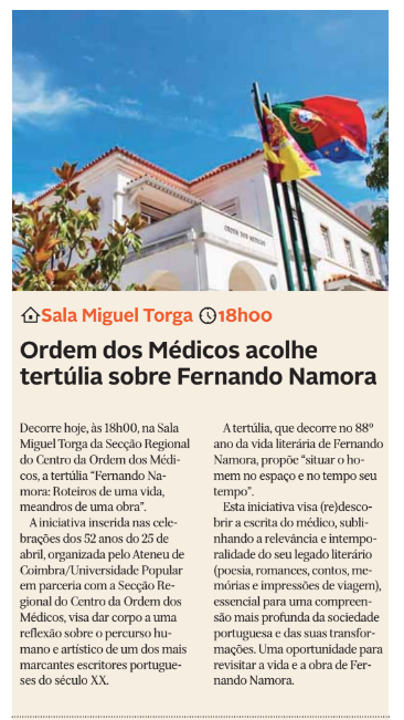 Ordem dos Médicos acolhe tertúlia sobre Fernando Namora