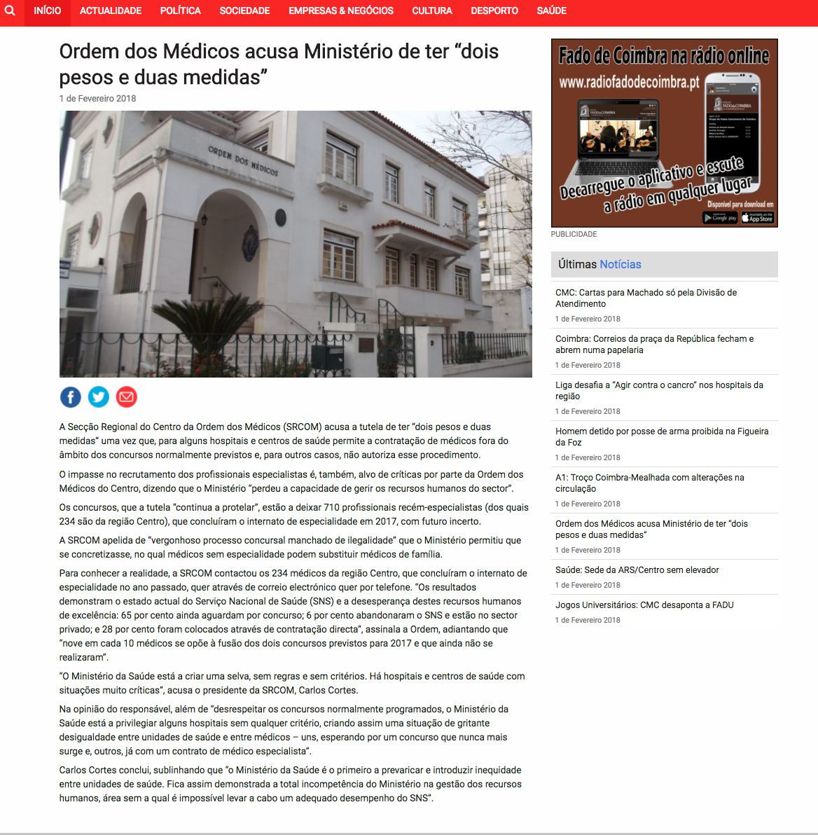Ordem dos Médicos acusa Ministério da Saúde de ter “dois pesos e duas medidas”