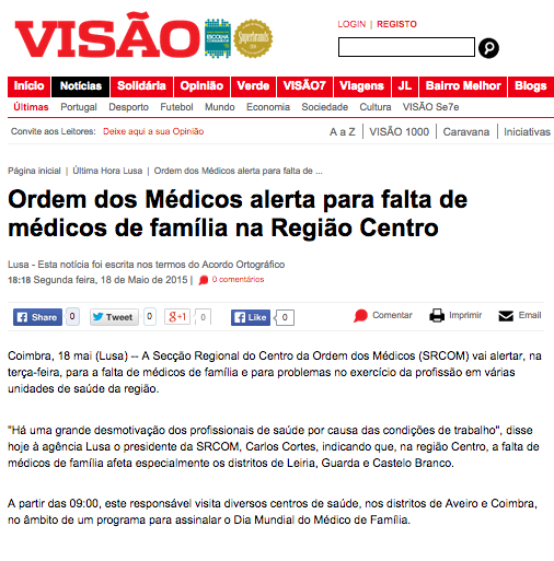 Ordem dos Médicos alerta para a falta de médicos de família na Região Centro