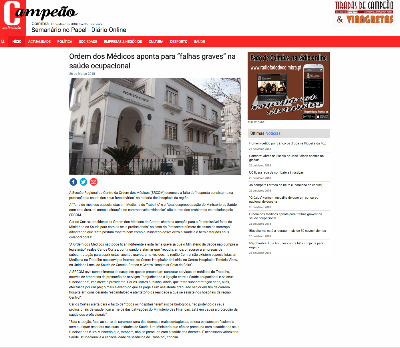 Ordem dos Médicos aponta para “falhas graves” na saúde ocupacional