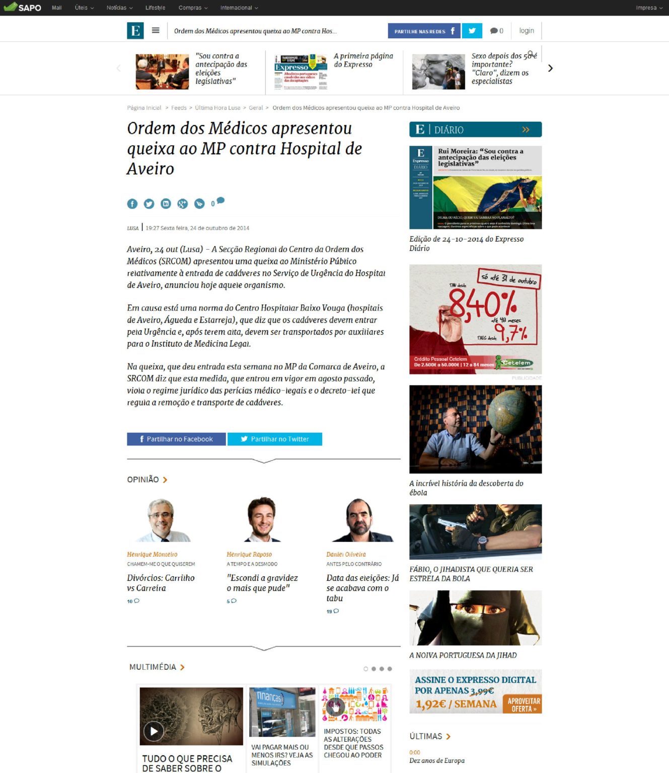 Ordem dos Médicos apresentou queixa ao MP contra Hospital de Aveiro